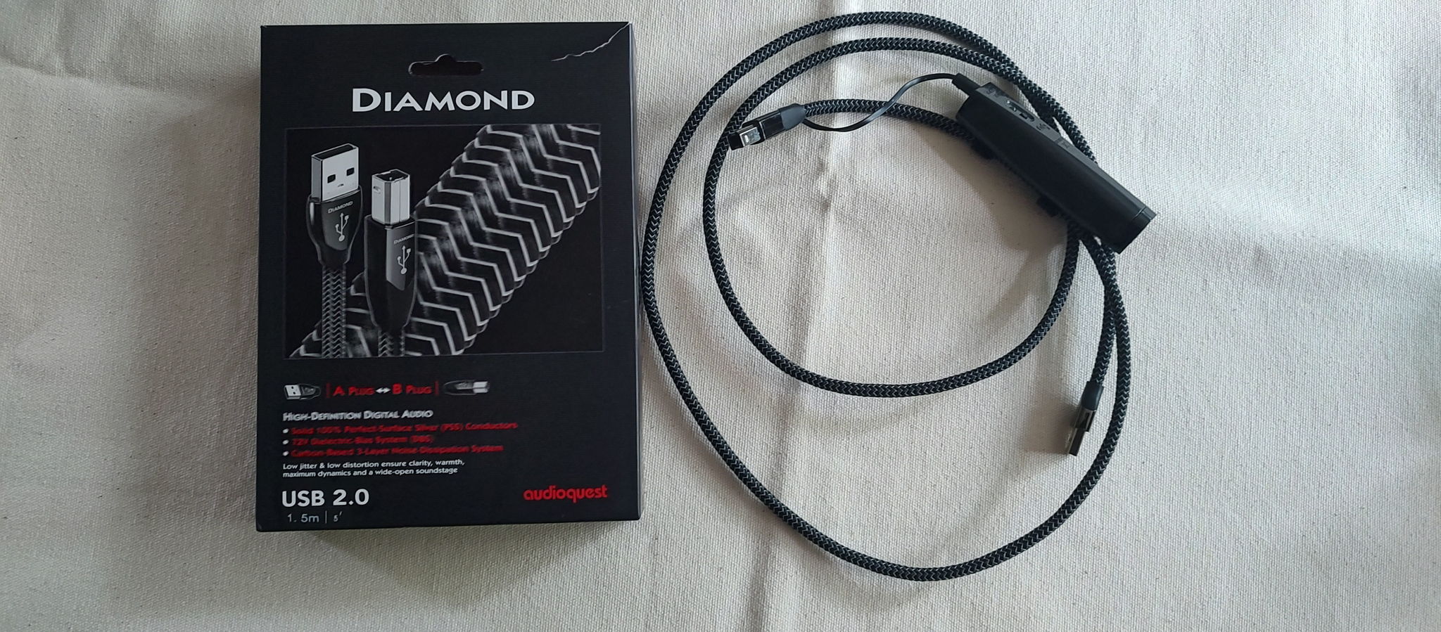 Product: *USED* AudioQuest Diamond USB Type A to USB Type B Cable (3-Meter or 10-Feet). Cosmetic Description: Excellent condition. No scratches, marks or tears. Functional Notes: Fully-tested....