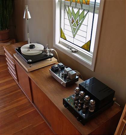 Howdy. Love the simple set up, and the tt to phono pre to amp in line visual. Great aesthetics all around, and I'm sure those tubes make for some beautiful music.