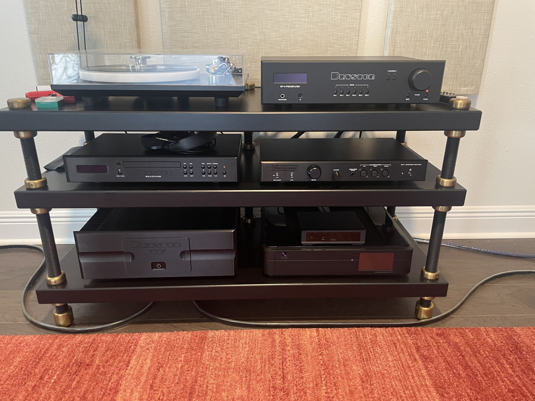 Bryston, Aerial, Rega, Shunyata, IsoAcoustics BP19MM/MC, 4Bcubed, BCD-3, BHA-1, Aerial 7T w/Gaia II, P5 w/mods, Power Cables,