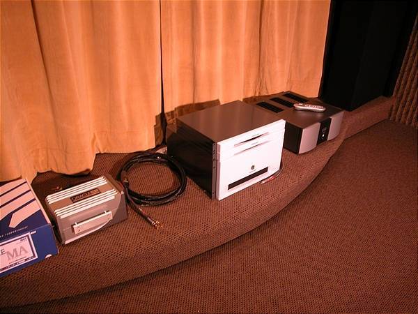 This is the latest system I've assembled. It has several absolute state of the art products and is playing in a prepared room. The space is 13 feet wide 21 feet long with a 9 foot ceiling. The walls are double suspended dry wall with acoustical batting. We have beams rinning across the ceiling in two locations to aid in breakup of standing waves and the rear of the speaker area is designed as a bass trap to isolate the lowest frequency rumble associated with high spl. The woofer system s computer controlled and room corrected.