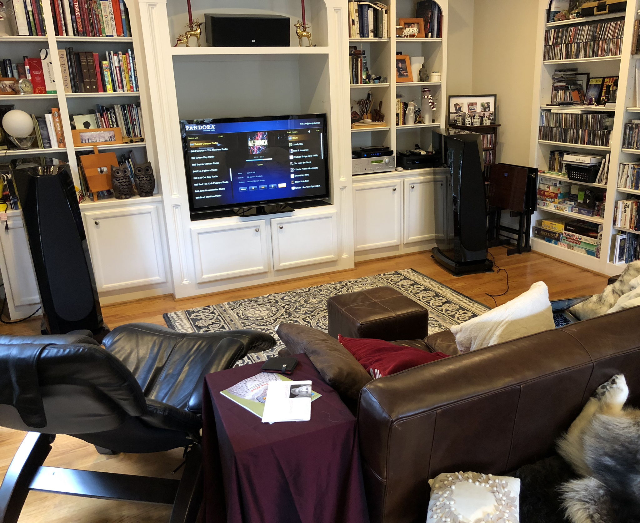Listening position uses about 1/3 of the room. Mixed two-channel and 5.1 channel system