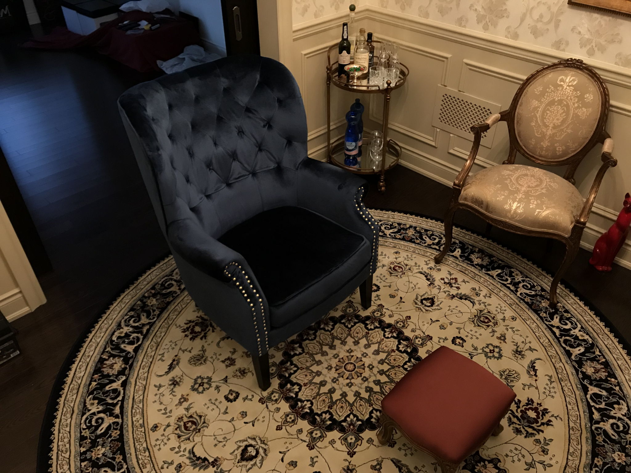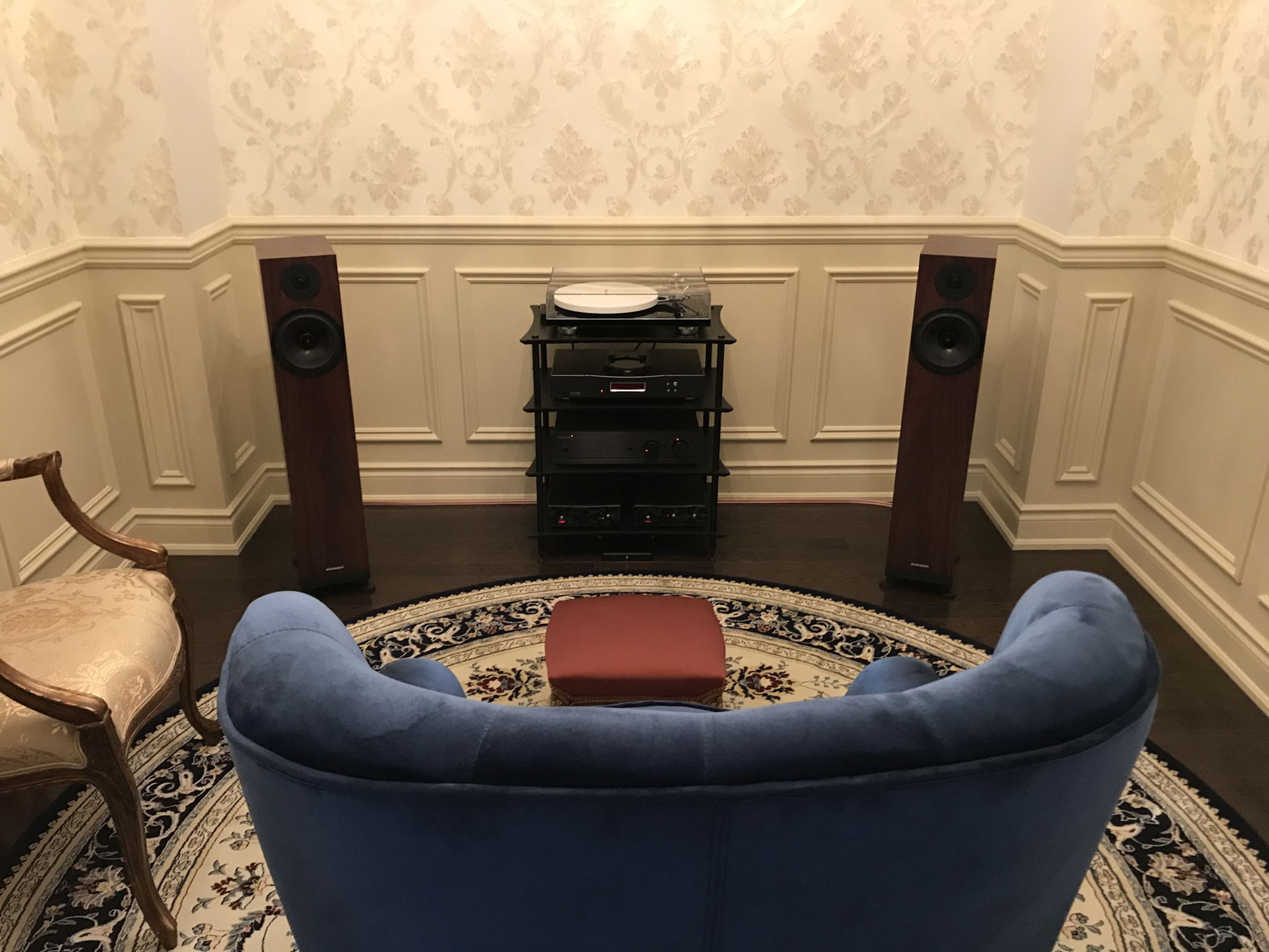 Great system for intimate listening. Have you tried your system rotated 90º to the right or left so your back isn't to the doors? Does it sound different?