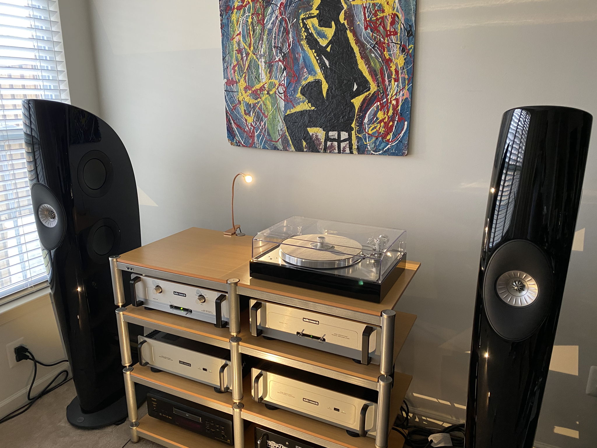 This represents an evolution of my system that approaches what I would consider an “end-game” level. The primary reason for this are the KEF Blade Two’s, which replaced my vintage Thiel 3.5 CS speakers. The Blades have been nothing short of a revelation…they are every bit the sonic, technical and design marvels all the reviews say they are. I have never heard a speaker that can seemingly do it all like the Blades can…they are incredibly revealing and accurate, while never becoming analytical. The Blades are able to convey the music with a cohesiveness and wholeness that always sounds “right” and complete. I find myself getting lost in the simple joy of listening to the music…of having fun!
